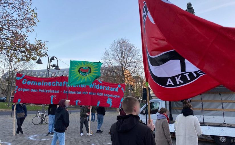 In Köln haben wir in der letzten Woche mit verschiedenen Mitteln unsere Solidarität mit den Angeklagten der G20-Prozesse praktisch werden lassen. Mit Plakaten, Wandzeitungen und einem kurzen Film haben wir uns klar gegen Klassenjustiz, Rechtsruck und Polizeistaat positioniert und versucht die Perspektive einer widerständigen Bewegung von unten aufzumachen. Am Ende stand bei winterlicher Kälte aber kämpferischer Stimmung unsere Kundgebung in der Kölner Innenstadt. Zu Beginn hörten knapp über 100 Teilnehmer*innen den Redebeiträgen der Antifaschistischen Aktion Köln-Sülz, der interventionistischen Linke, dem Antifa-AK und dem Kollektiv Edelweiß zu. Dazu kamen Grußwörter von Fabio, den minderjährigen Angeklagten und ein Beitrag einer Anwältin. Wir sind solidarisch mit allen Angeklagten der G20-Prozesse und lassen uns nicht durch Repression fertig machen. Denn wie in einem Redebeitrag klargemacht wurde: